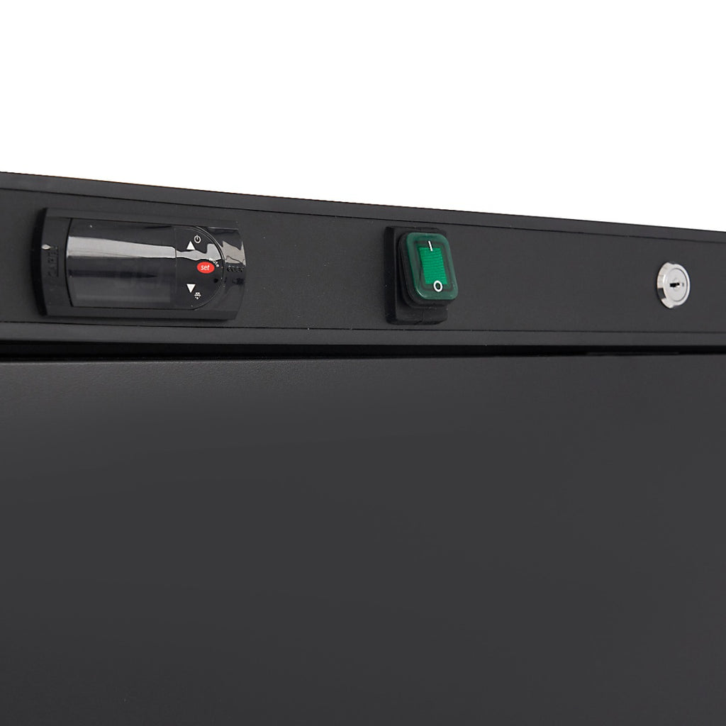 Denne professionelle fryser har en bruttokapacitet på 600L til at opbevare frosne produkter i. Med sin kompakte størrelse passer denne sorte fryser ind i næsten ethvert professionelt køkken. Seks hylder sikrer, at der er mere end nok plads til at opbevare det, du har brug for. Hylderne er faste og kommer i et gitter for at forbedre ventilationen. Døren har en lås for ekstra bekvemmelighed.
