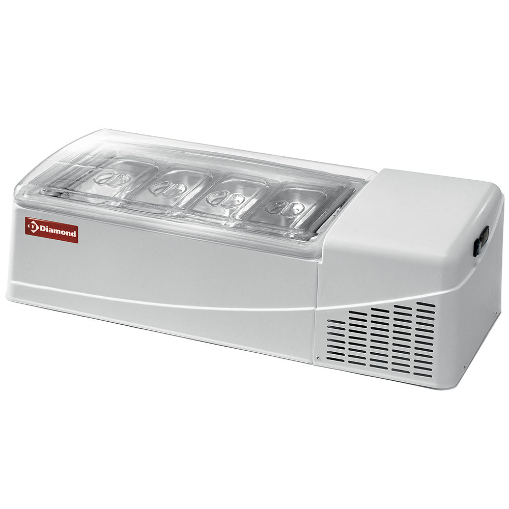 - Kapacitet: 4x 6,5L, 5L, 3L eller 8x 2,5L beholdere. - Hvid ABS-ramme, plexiglas låg. - Kobberfordamper med spoler. - R290 kølemiddelgas. - CFC-fri isolering. - Nem vedligeholdelse og service. NB: Leveres uden beholder.